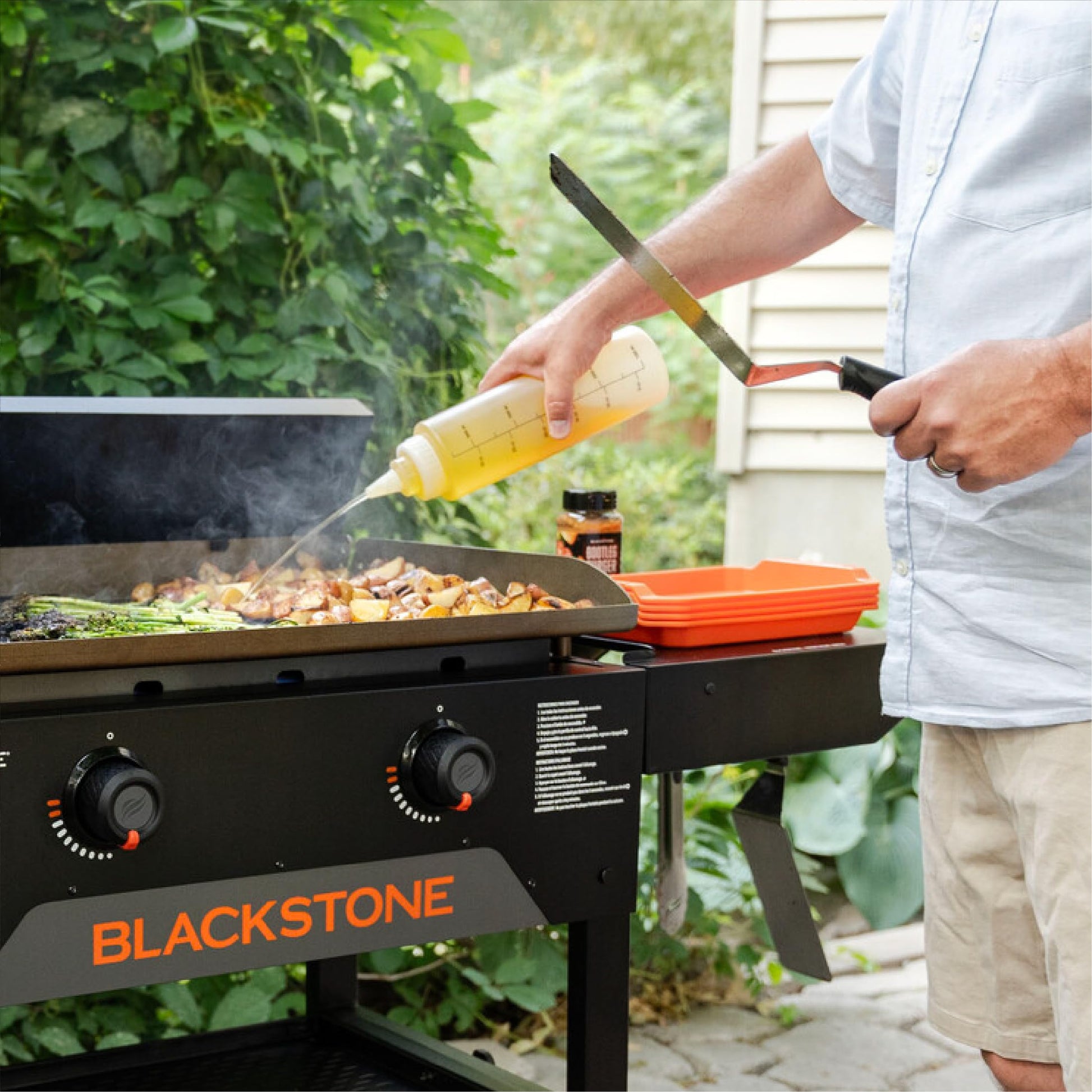 - Add Flavor: Always keep a Blackstone 32 oz. squeeze bottle full of your favorite sauces and oils to add flavor to your culinary creations.