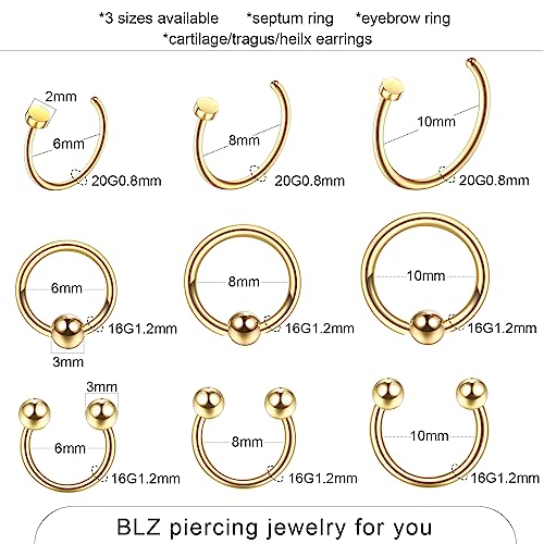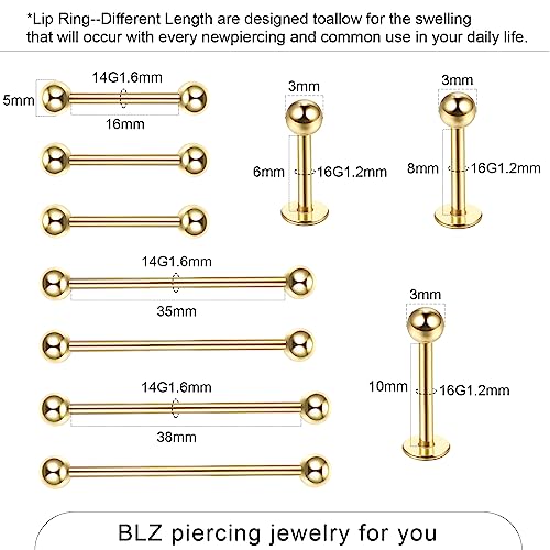 BLZ Piercing Kit Stainless Steel Piercing Needles 20G 18G 16G 14G 12G Belly Button Ring Ear Nose Septum Piercing Jewelry with Clamps Gloves Piercing Tools for Body Piercing