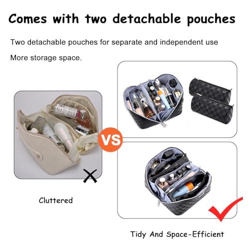 - Waterproof Leather Travel Make up Bags for Women: This makeup travel bag is made of high-quality Vegan leather, soft to the touch, waterproof and easy to clean, not easy to fade. Stain-resistant material stays flawless for years, not months.