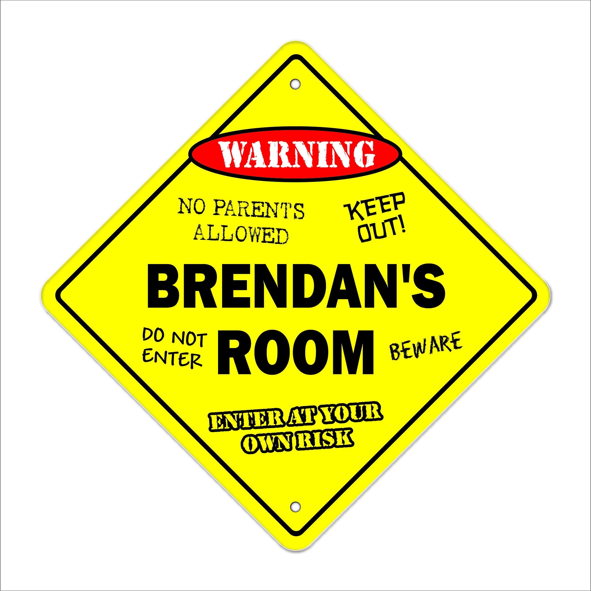 Brendan's Room Sign Crossing Zone Xing | Indoor/Outdoor | 12" Tall Kids Bedroom Decor Door Children's Name boy Girl