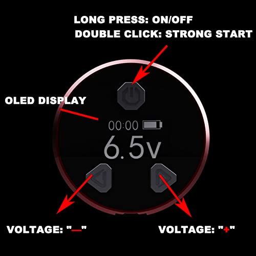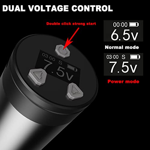 - [Dual Voltage Control & OLED Display]: Effortlessly switch between two voltage groups with this wireless rotary tattoo pen machine for ultimate control over your tattooing process, whether you're packing color, perfecting lines, or achieving subtle shading. The integrated OLED display centralizes multiple functions in one, providing clear and easy monitoring of your pen's performance.
