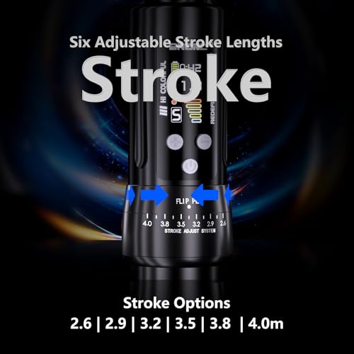 - [Adjustable Strokes] The BRONC X2 features 6 adjustable stroke lengths: 2.6mm, 2.9mm, 3.2mm, 3.5mm, and 3.8mm. With an adjustable needle depth of 0 to 4.5mm, it accommodates various applications, including body tattoo color packing, blending, lining, as well as PMU and SMP work. Compatible with most brand cartridge needles.