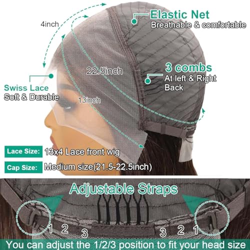 - #4 Brown wigs 13x4 Lace Comfortable and breathable: Transparent lace front wigs human hair wigs, pre plucked natural hairline with baby hair around The 13x4 lace front cap provides a comfortable and breathable fit.