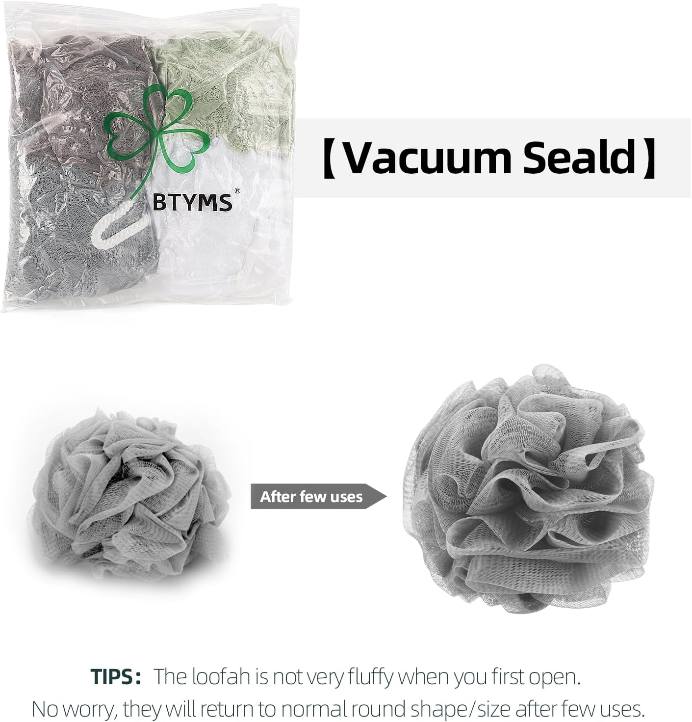 BTYMS Loofah Sponge 60 Gram Shower Pouf Bath Scrunchies Shower Puff Exfoliating Body Wash Scrubber Bath Puffs for Washing - Set of 4
