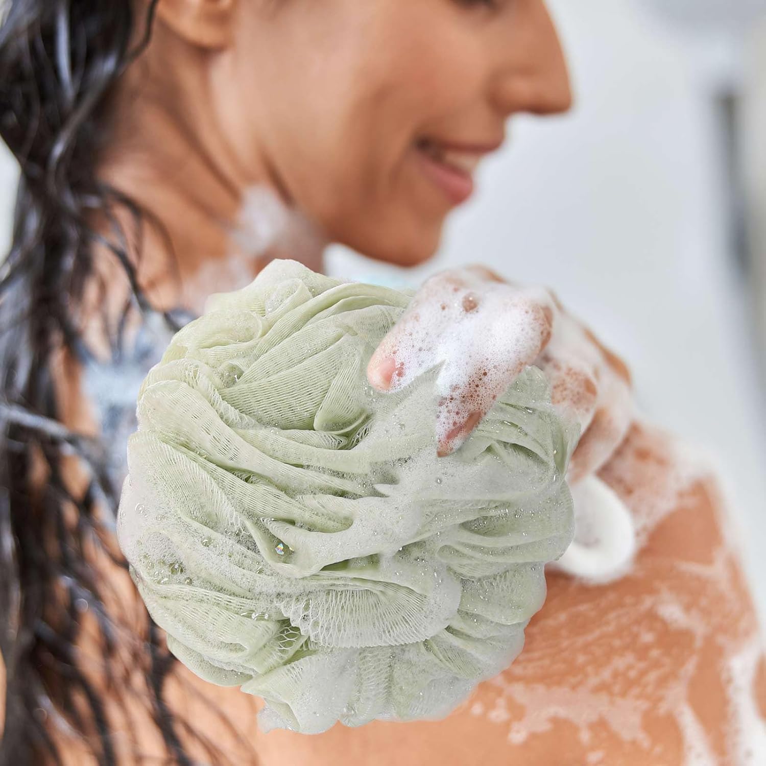 - Shower puffs has a soft braided rope which is convenient to be rise dry and save space, it will not scratch your body