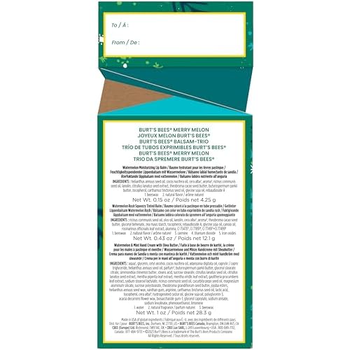 Burt's Bees Lip Balm, Squeezy Tinted Balm and Hand Cream Gift Set, Merry Melon, Ready to Give Holiday Gift, 1 Gift Set