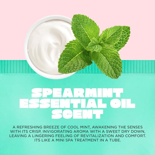 - SPEARMINT ESSENTIAL OIL: A refreshing breeze of cool mint, awakening the senses with its crisp, invigorating aroma with a sweet dry down, leaving a lingering feeling of revitalization and comfort. Its like a mini spa treatment in a tube.