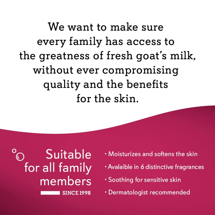 Details: Made using fresh Goat's Milk that we collect from local goat farmers. Our soap is made by traditional saponification and cleanses your skin without drying or altering its natural hydration barrier. Our original recipe has delicately perfumed local families since 1998. The cream present in goat's milk is a moisturizer for soothing dry and damaged skin. Full of essential nutrients and vitamins A, B2, B3, B6, B12, and E, that feed the skin and are absorbed into the body. Proteins are easily absorbed by the skin, contributing to a deep and extended hydration.