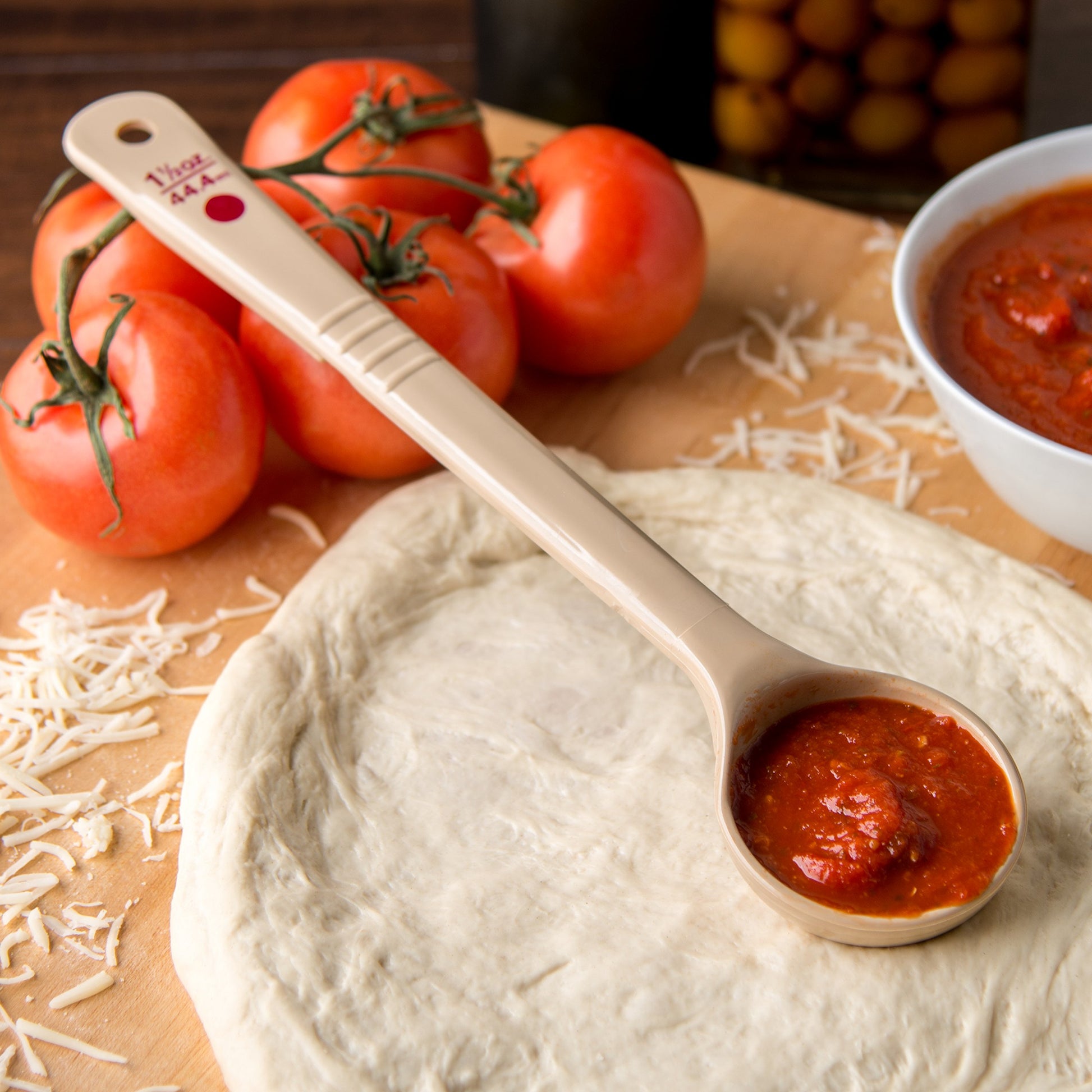 Details: All measure mizers spoons (sold separately) come in a specific easily identifiable color to match a specific measurement. The spoon features a useful handle that includes a thumb grip and a pan notch for steady control. Use the spoon's flat bottom to spread sauces or toppings and to stay put when you set it down. The spoon is recommended for temperatures up to 212°f. It withstands dry heat up to 270°f. It is BPA free, NSF listed and dishwasher safe.