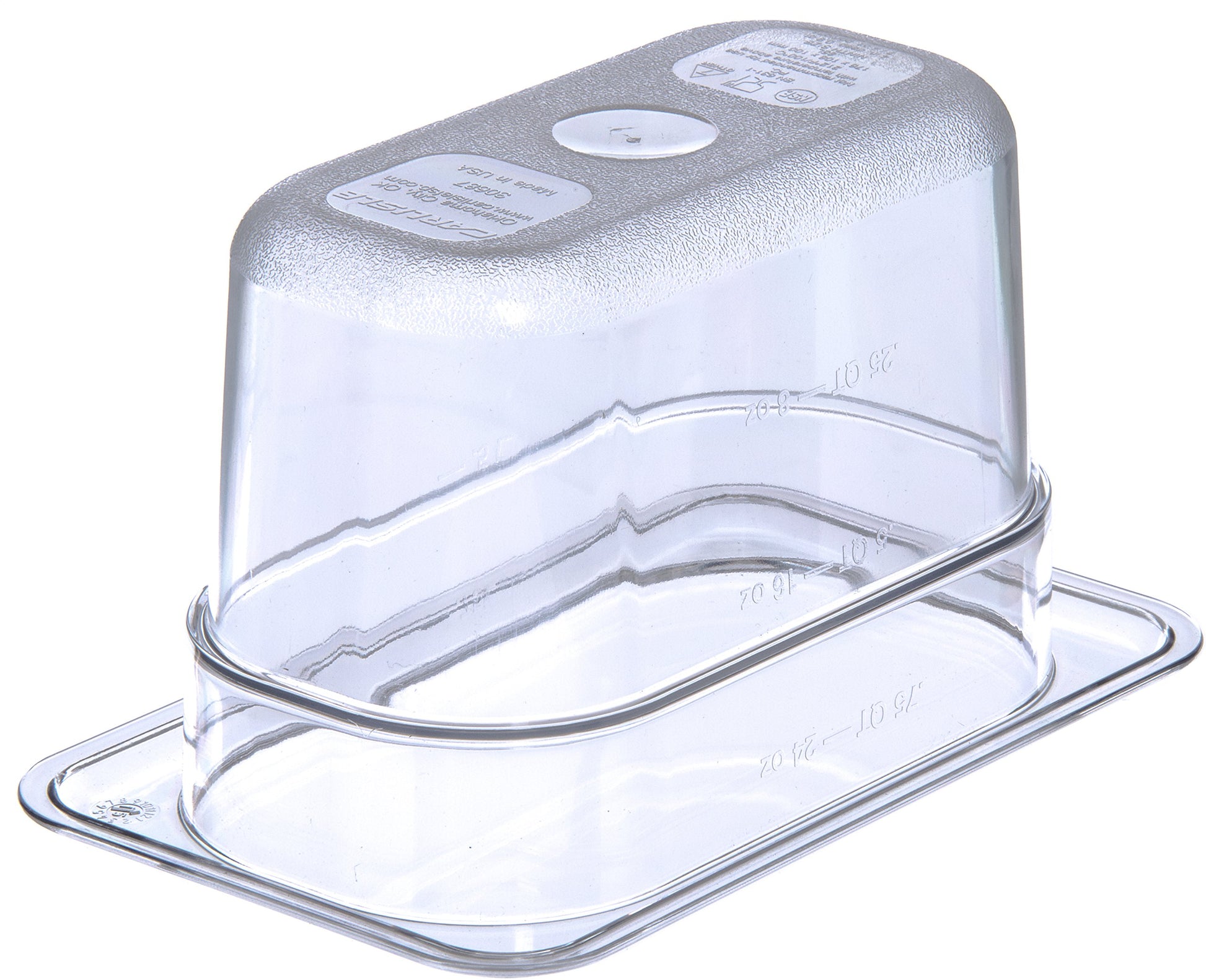 Details: The Carlisle FoodService Products StorPlus 1/9 Size Food Storage Container is an essential tool for catering, buffets, and restaurant kitchens, designed to streamline food preparation, storage, and service. Crafted from durable polycarbonate, this food pan is built to resist shattering, cracking, and staining, ensuring long-lasting use in even the busiest commercial settings. Its clear design allows for easy visibility of contents, making food management more efficient. One of its standout features is the spoonable bottoms with rounded interior corners, which make it easier to remove every bit of food, reducing waste and ensuring efficient serving. The reinforced rim and corners provide extra strength, preventing chipping, cracking, or breaking, even under frequent use. This food pan is also stackable, allowing multiple units to be easily stored on top of each other, saving valuable space in your kitchen. The non-slip base finish adds a layer of safety and practicality by reducing visible signs of wear and preventing the pan from slipping, even on slick surfaces. At 4 inches deep, this 1/9 size food pan is ideal for holding and serving a variety of ingredients, from prepared meals to sauces and toppings (Model Number: 3068707).