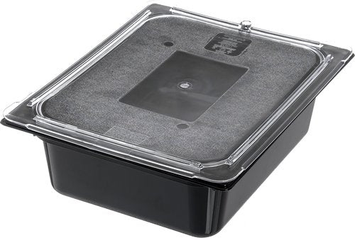 Details: The Carlisle FoodService Products Storplus 1/2 Size Universal Lid is a game-changer for catering, buffets, and restaurant operations. Crafted from durable polycarbonate, this lid is a testament to longevity, designed to withstand the rigors of busy kitchens without succumbing to shattering, cracking, or staining. Its innovative design isn't just about durability; it's also about preserving freshness. By securely resting on the pan rim, it forms a tight seal that minimizes air exposure, ensuring that your culinary creations retain their flavor and appeal for extended periods. Versatility is key in any kitchen, and this universal lid delivers. Compatible with all major food pan brands, it seamlessly integrates into your existing setup, offering convenience and flexibility like never before. Moreover, its NSF Listing speaks volumes about its quality and safety standards, providing assurance in even the most demanding commercial kitchen environments. While dishwasher safe, hand washing is recommended for enhanced durability, ensuring that this lid continues to perform at its best, meal after meal. (Model Number: 10236U07).