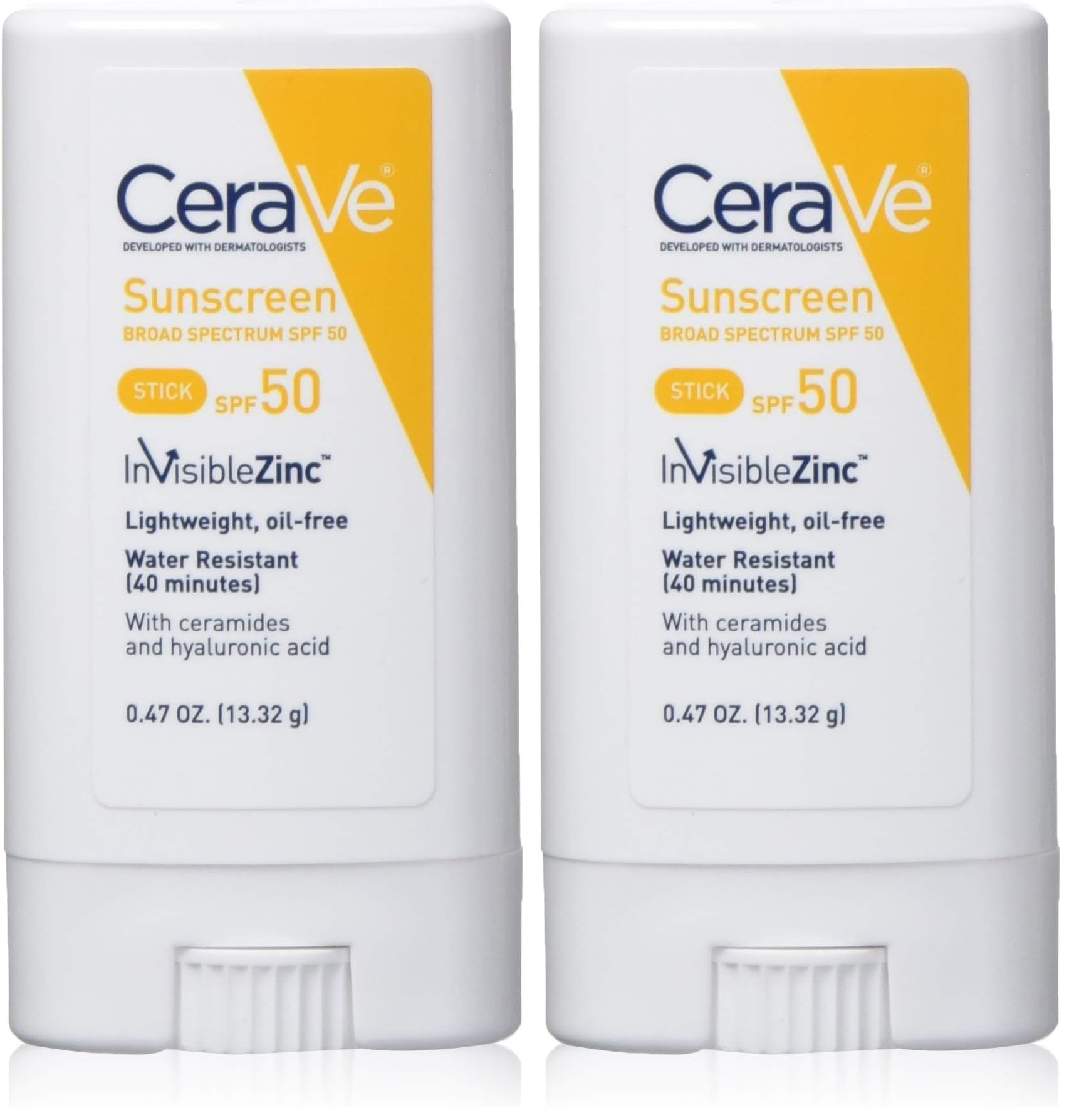 CeraVe Sunscreen stick spf 50 | 0.47 ounce | mineral sunscreen for kids & adults | fragrance free, 0.47 Ounce (Pack of 2)