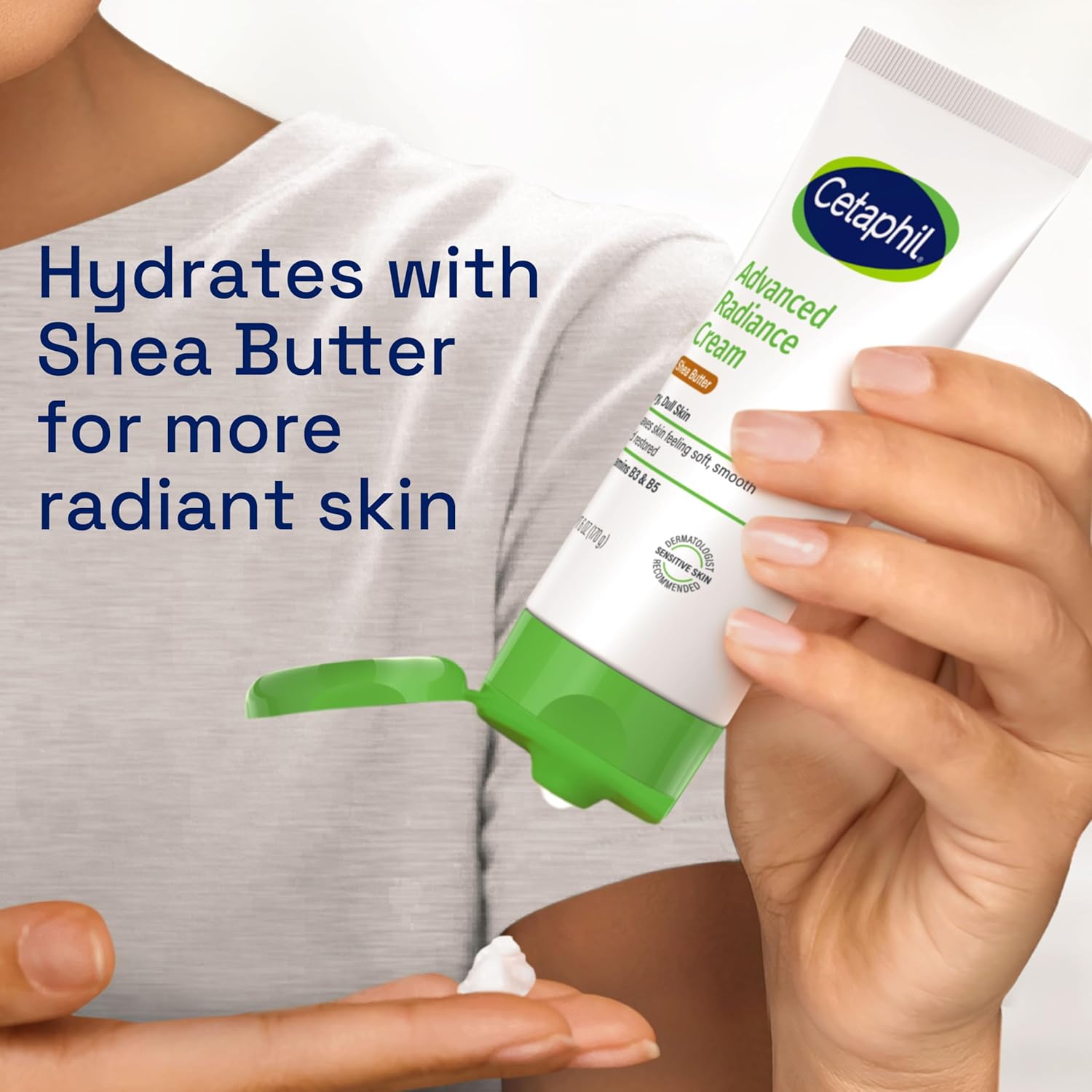 Cetaphil Advanced Radiance Cream with Shea Butter, 6 oz, For Dry, Dull Skin, More Radiant Skin, 48 Hour Hydration, All Skin Tones & Types, Hypoallergenic, Fragrance Free