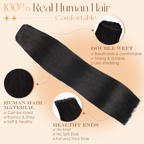 Clip in Hair Extensions Real Human Hair 20 Inch 110g Invisible Seamless Human Hair Clip in Extensions for Women 7pcs Per Set with Double Weft 1B Natural Color