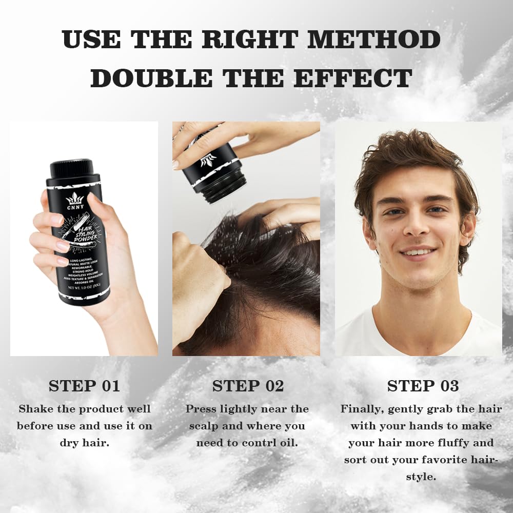 - Hair Powder for Men: 1oz hair styling powder which is large-capacity fluffy powder for creating perfect hairstyles. Hair texture powder instantly adds volume and texture to your hair, helping you to rock any hairstyle.