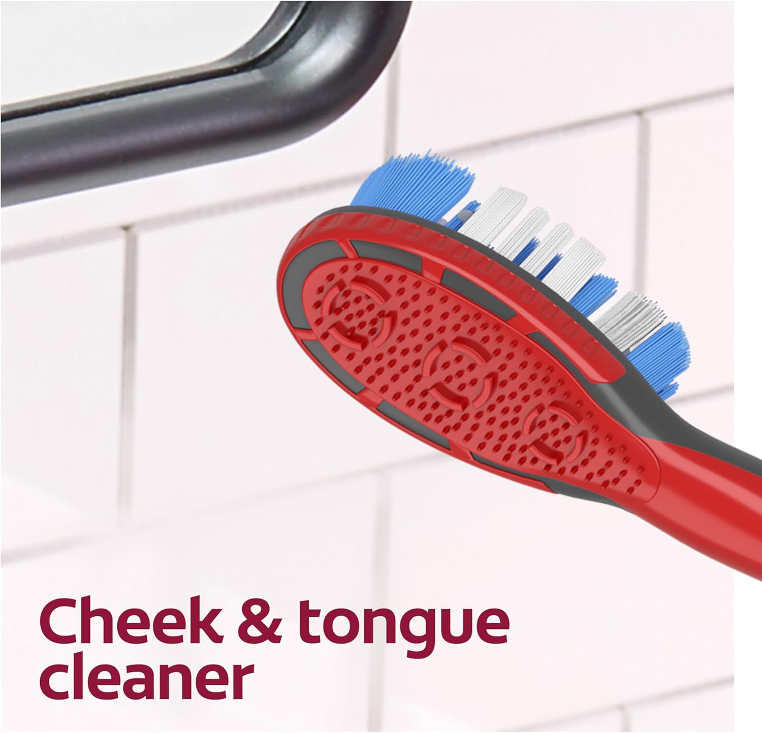 - Battery powered toothbrush cleans the whole mouth including the teeth, cheeks, tongue, and gums so you can enjoy a whole mouth clean with every brush