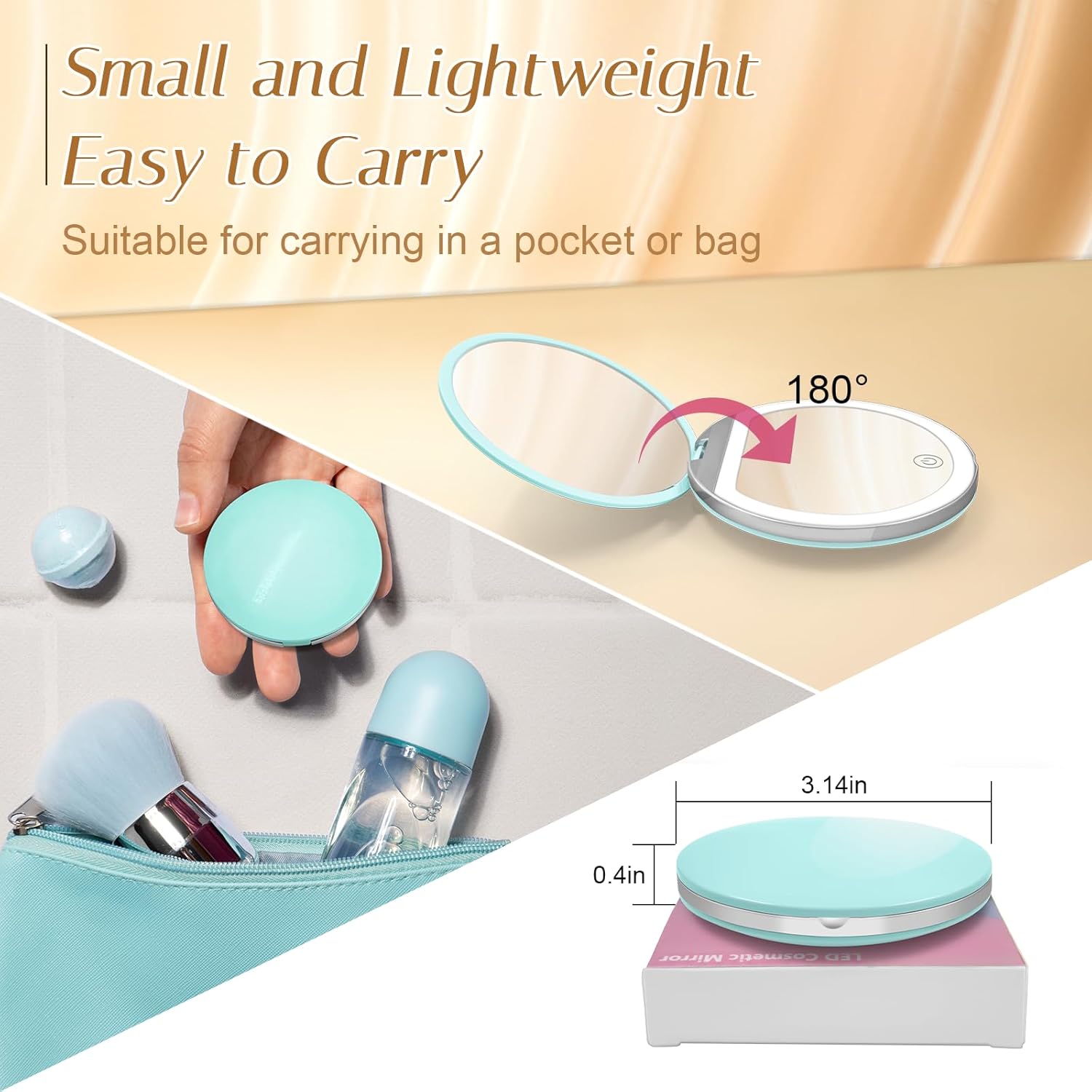 - [Stay Beautiful All The Time]--Our pocket mirror is lightweight, compact, easy to carry, and equipped with a USB cable, so you don't have to worry about changing batteries at any time. It is the perfect companion for you on the road. Whether in between makeup sessions or on the go, it can create a sophisticated and flawless look, allowing you to look confident and beautiful in any occasion.