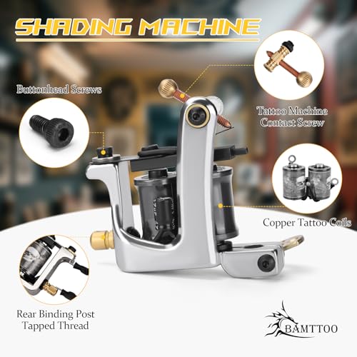 - ¡¼Complete Tattoo Machine Kit¡½Features two tattoo coil machines with full set to make tattooing quick and easy. The lining & shading machines help make it easy to get right tattoo style. You can play and adjust any parts with coils machines. The tattoo machines has a powerful, long-lasting coils. The needles are also stainless steel to provide outstanding cutting performance.