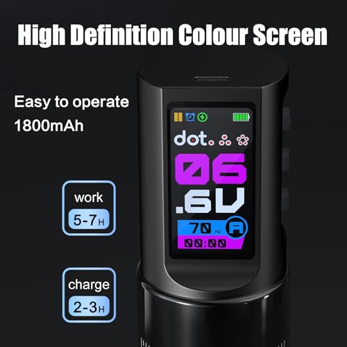 - Versatile 7 Stroke Options: length 130 mm/5.12 in, weight 228 g, standard 38 mm grip for great comfortable control, offers adjustable strokes 2.4/2.7/3.0/3.3/3.6/3.9/4.2 mm for effortless style versatility¡£In addition, it also has a dotting function, allowing tattoo artists to experience a different feeling.The Tattoo Gun delivers expert-level performance in lining and shading, perfect for black and grey work, color packing, blending, and SMP, giving pro artists the freedom of a cordless experience for optimal results