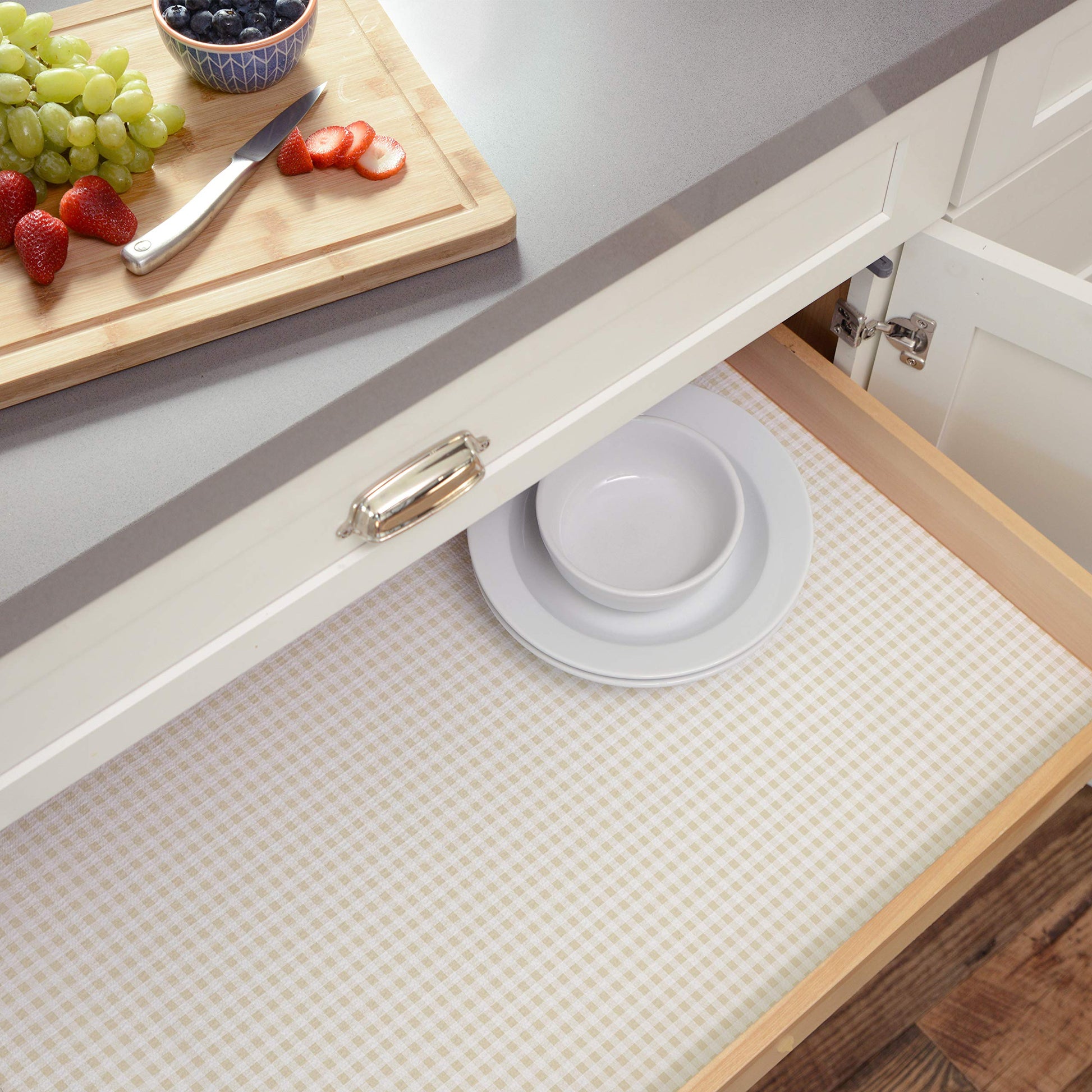 Con-Tact Brand Grip Prints Durable Non-Adhesive Non-Slip Shelf and Drawer Liner, 12'' x 5', Khaki Plaid