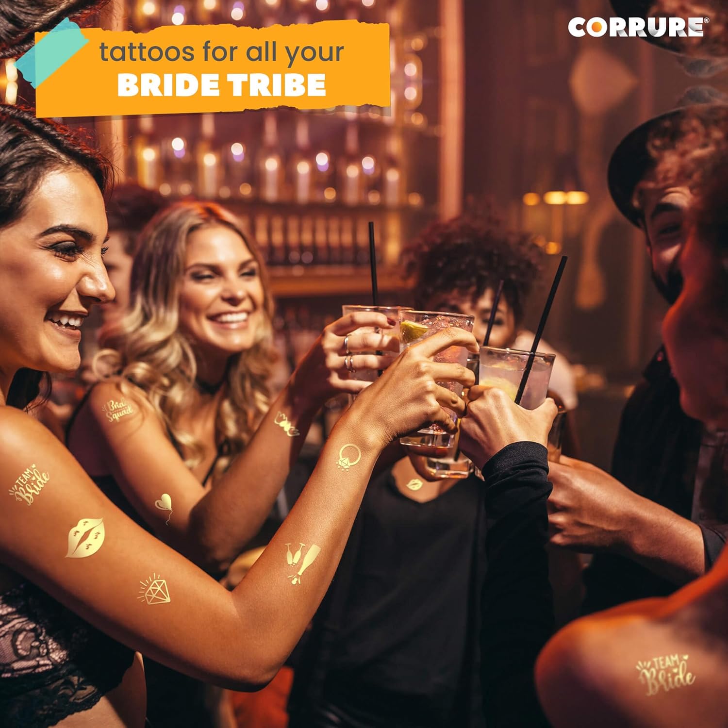 CORRURE Bachelorette Tattoos - 38pcs Gold Temporary Metallic Tattoo Stickers for Bridesmaids and Bride Tribe - Bachelorette Party Decorations, Bridal Party Favors, Games and Women Accessories