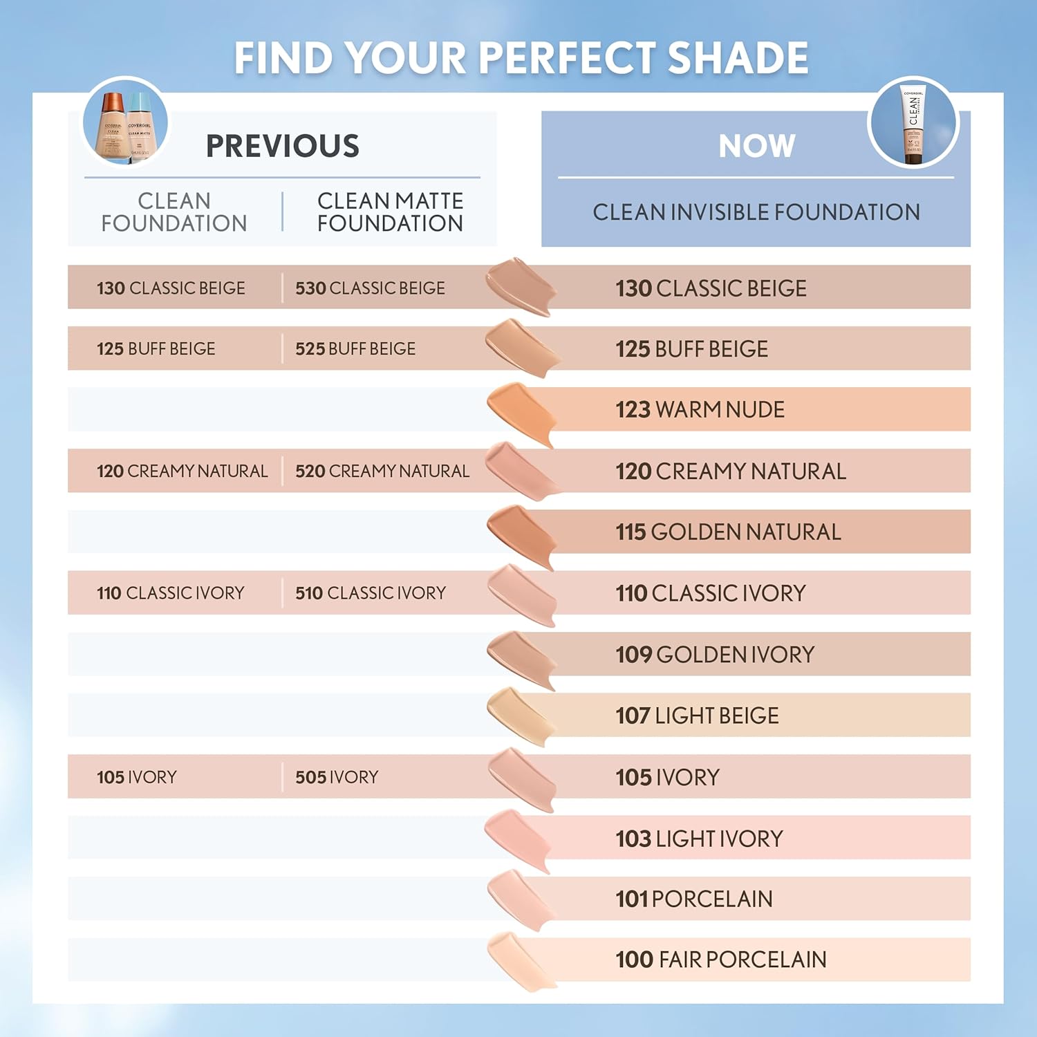 New & improved Clean Invisible Foundation is now clean & fragrance free. Lightweight, breathable formula looks & feels like your skin, but better. Now in an easy to use tube.