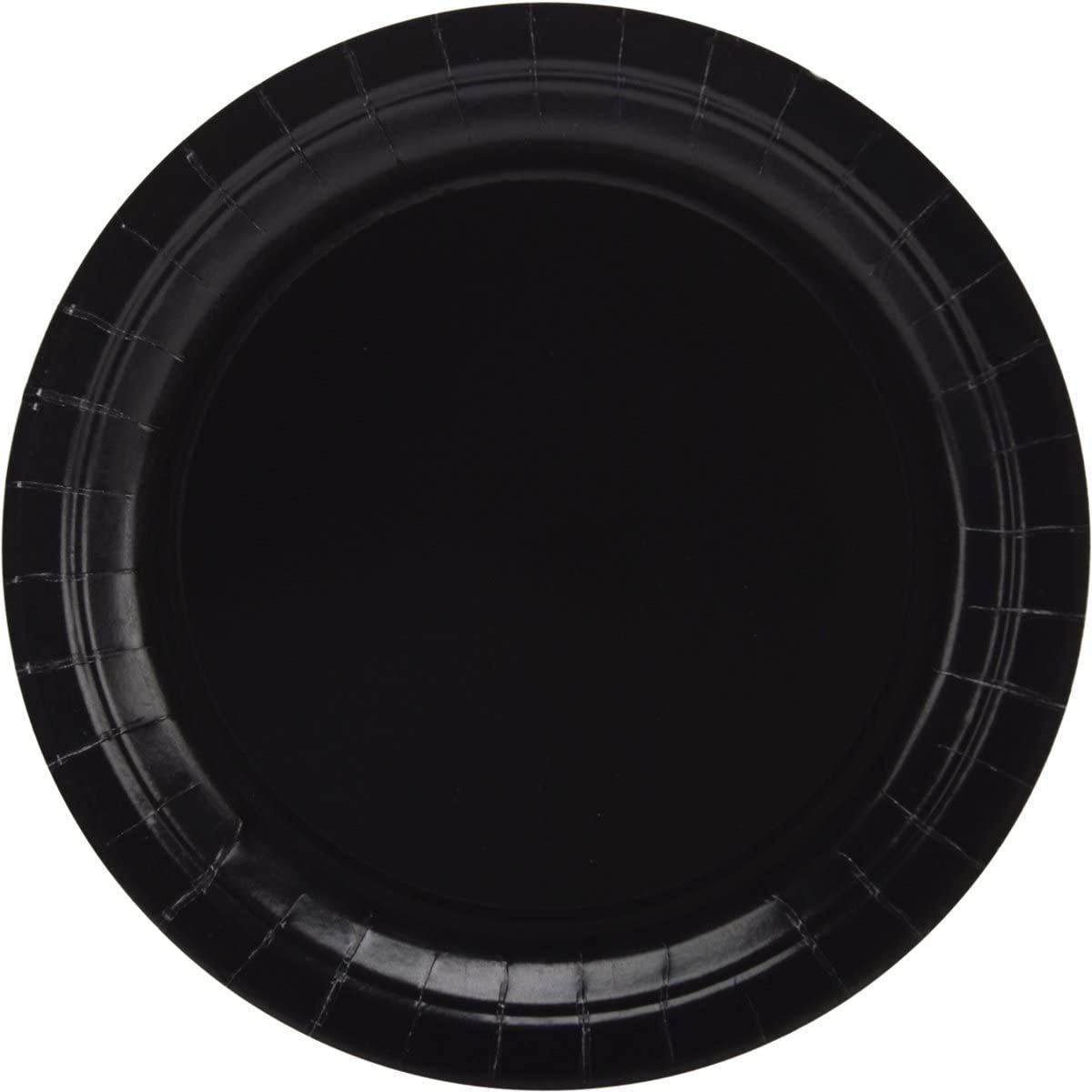 Details: Easily add a hint of style to your table display with the Black 9” Plates. The durable disposable plates are constructed of heavyweight paperboard stock and are sturdy enough to handle pot luck service or even a more formal sit down meal. Sold in a quantity of 24 per package, the dinner plates can be combined with other eye-catching tableware selections from the complete line of Black party supplies.
