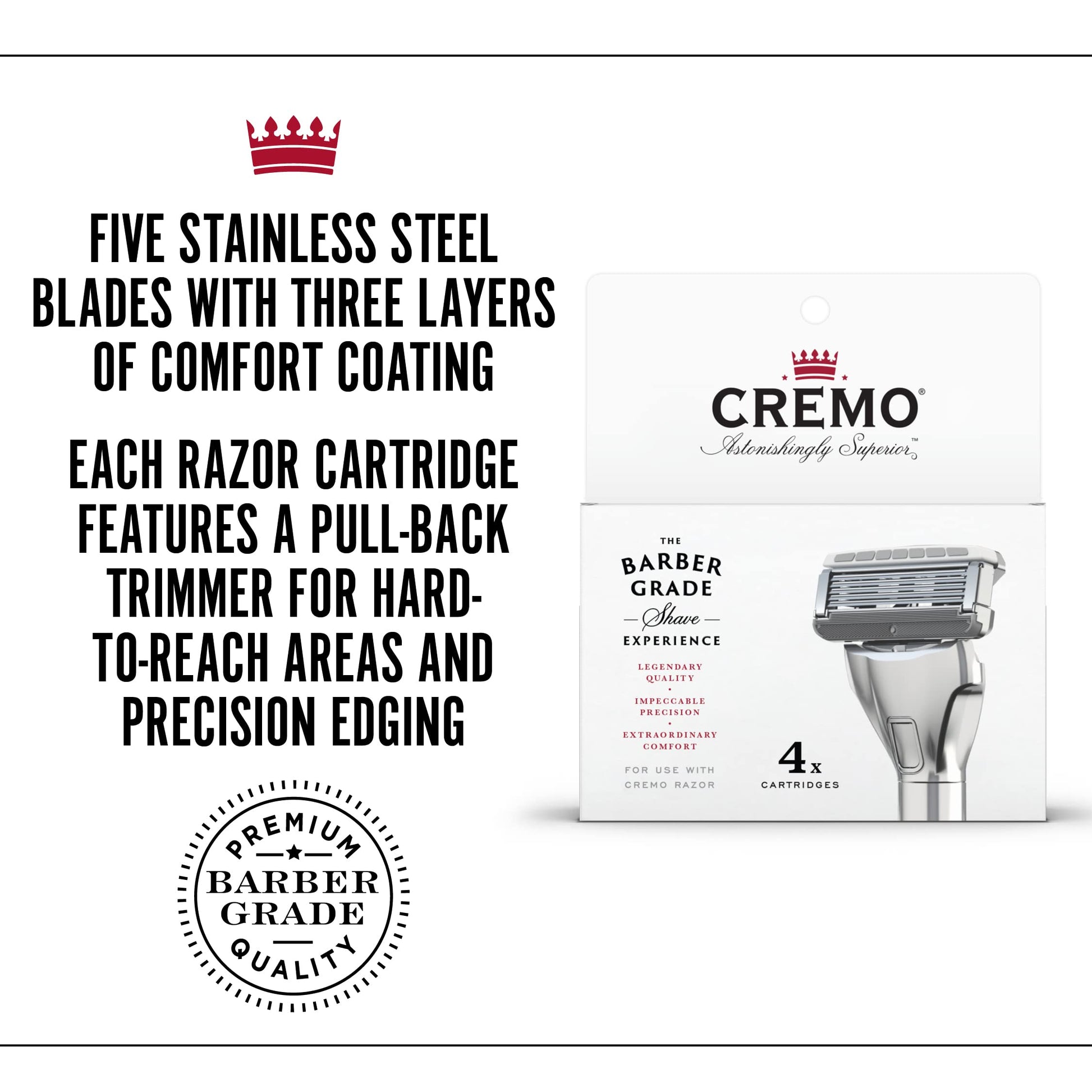Details: Cremo Astonishingly Superior Razor Refills, (4 Pack)