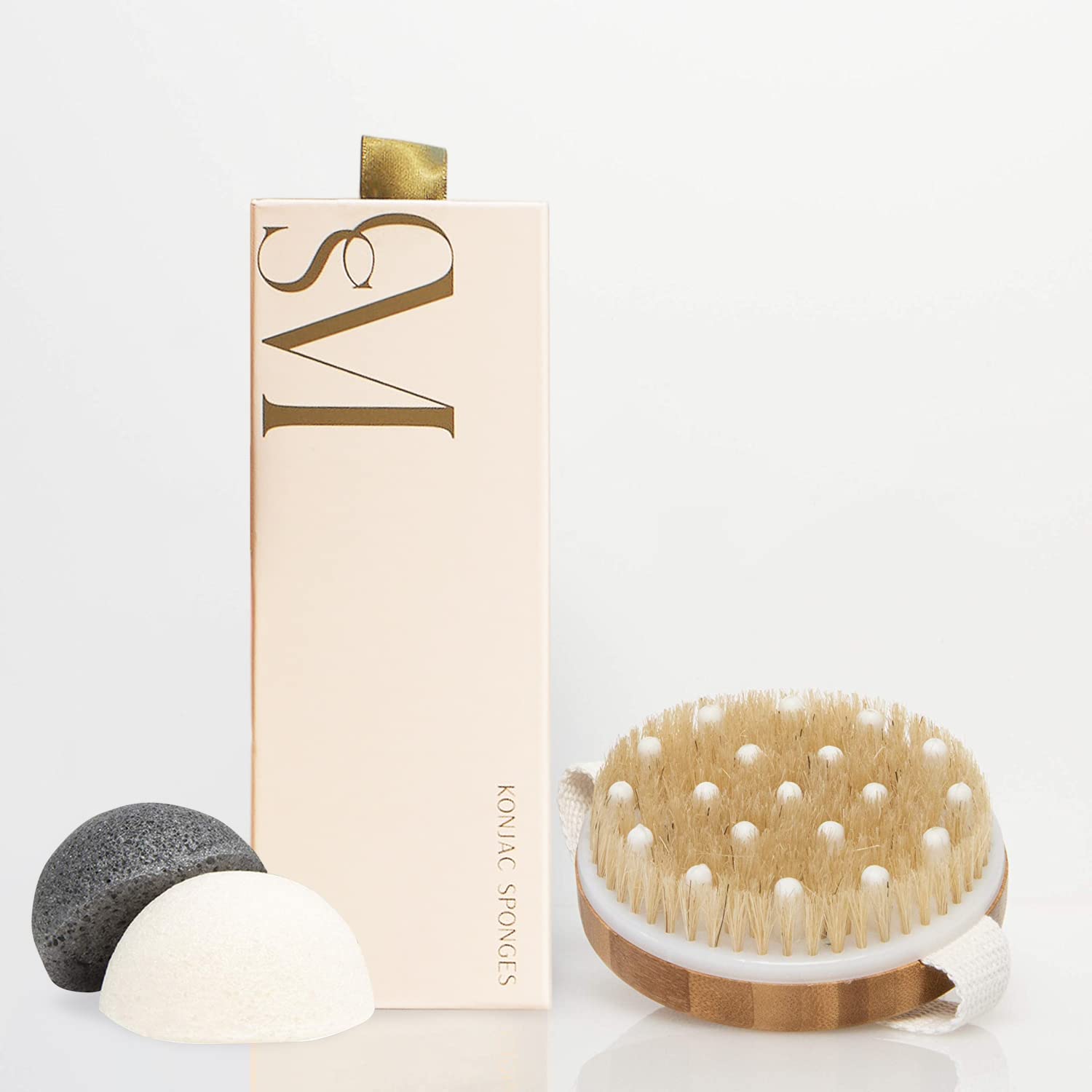 CSM Body Brush & Konjac Sponges (3-Pack) Bundle - Wet or Dry Body Brush - Reduce The Appearance of Cellulite, Dry Skin. Improves Circulation Facial Sponges - Cleanses Dirt, Oil, Dead Skin, and Makeup