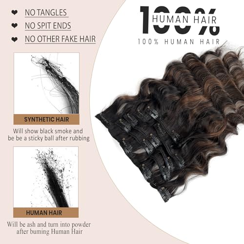 Curly Clip in Hair Extensions Seamless Clip in Hair Extensions Remy Human Hair Ombre Natural Black to Chestnut Brown Hair Extensions Invisible PU Skin Weft Soft Natural Clip ins£¨20in£©