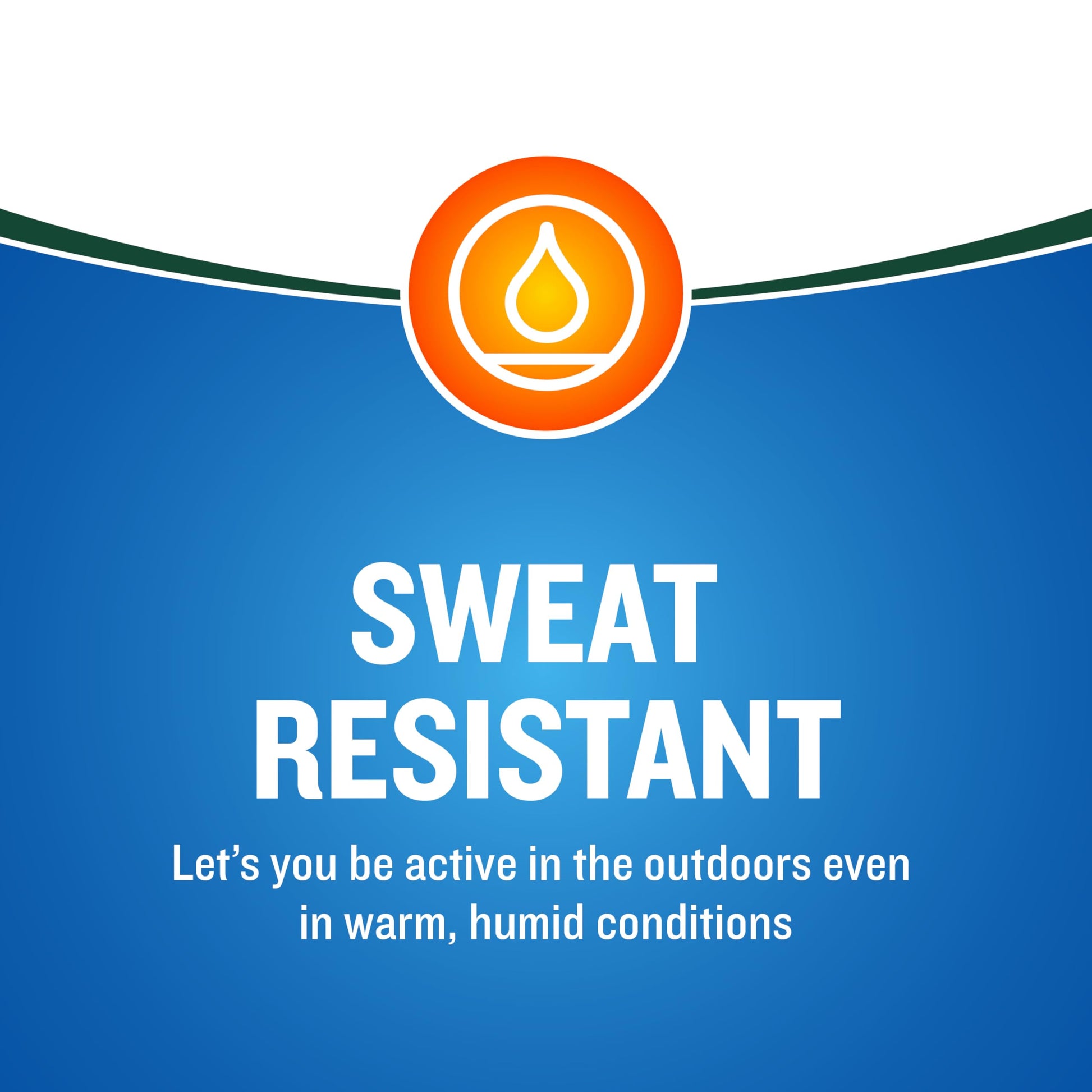 - SWEAT RESISTANT: Won’t sweat off – lets you be active in the outdoors even in warm, humid conditions.
