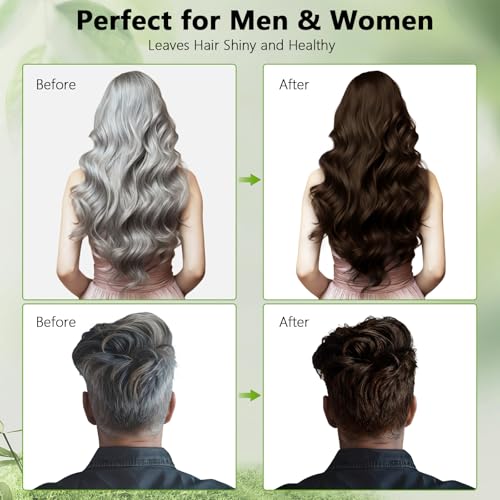 Dark Brown Hair Dye Shampoo for Women & Men, 15 Min Gray Coverage, 3 in 1 Semi-Permanent Color with Natural Herbal Ingredients, Lasts 60 Days