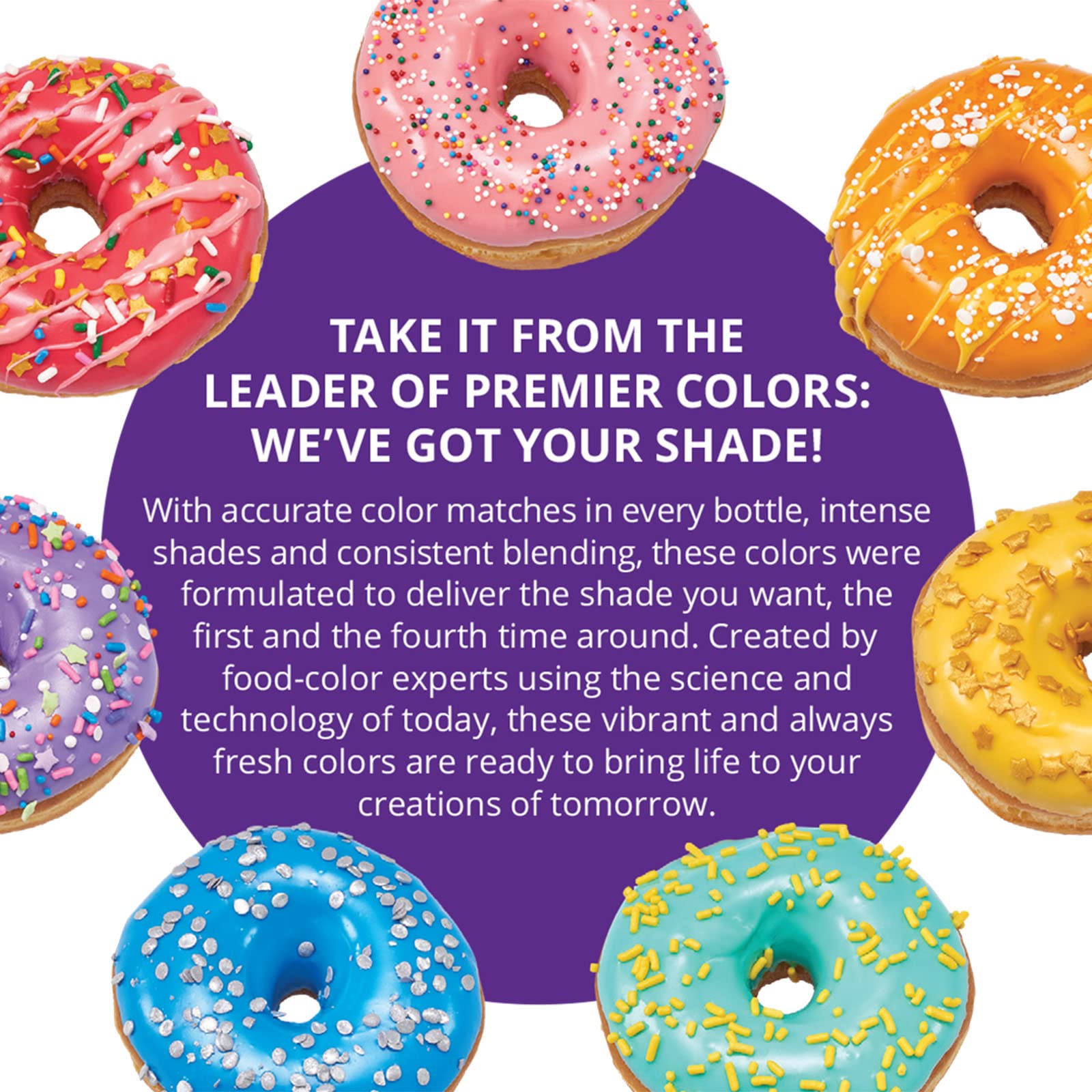 Details: Premium airbrush colors are specially formulated by food color experts for bakeries. Designed to deliver intense shades and color consistency in every bottle. Manufactured in the USA. Shake well before use.