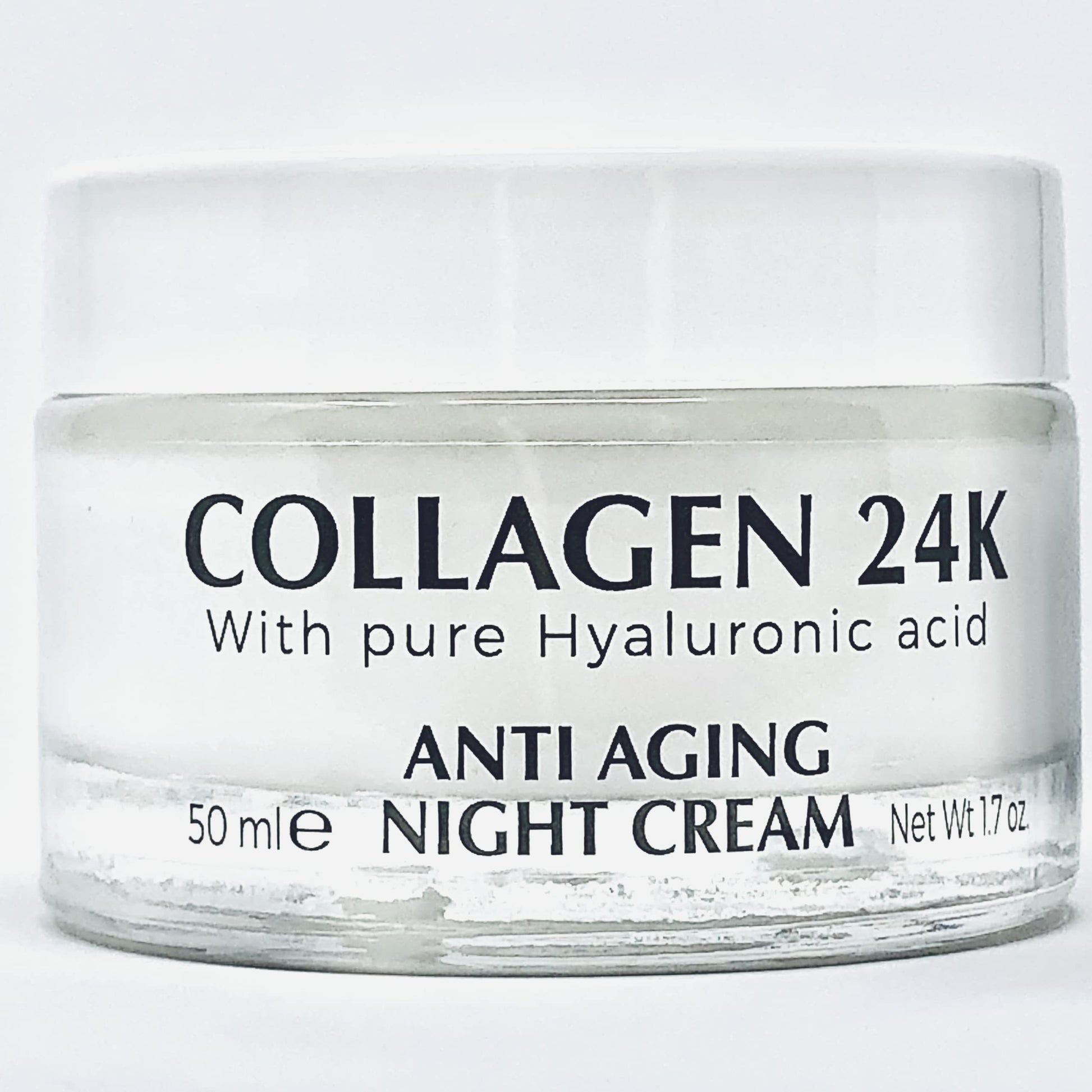 Details: PURE COLLAGEN 24K Anti-aging Night Cream is a powerful combination of Collagen, Pure 24 K Gold and Hyaluronic Acid - a triple ingredient complex to achieve a radiant appearance. Delfanti Milano COLLAGEN 24K boosts the powerful actions of Collagen, a natural protein that is the base of skin's tone and smoothness, with natural actives and precious oils. The loss of collagen over the years results in fine lines, wrinkles and sagging skin. TO USE: Apply every night to a cleansed face and neck, avoiding direct eye contact.