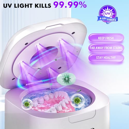 - ¡¼Large Capacity & Portable¡½The mouth guard cleaner Machine is portable, 350ml large capacity enough to clean dentures, braces and other items, suitable for travel, This Denture Cleaner Machine is also a great gift for seniors, adults and teens.