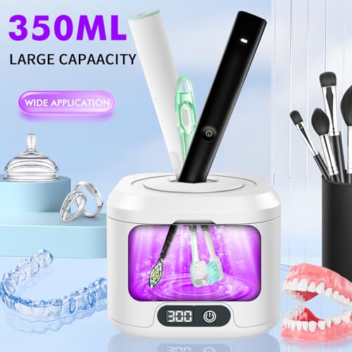 Dental Ultrasonic Retainer Cleaner Machine: Soffiya 49kHz Denture Cleaner with 350ML for Cleaning Dentures, Mouth Guards, Aligner, Braces, Toothbrush Head & Jewelry - UV Cleaner with 4 Digital Timers