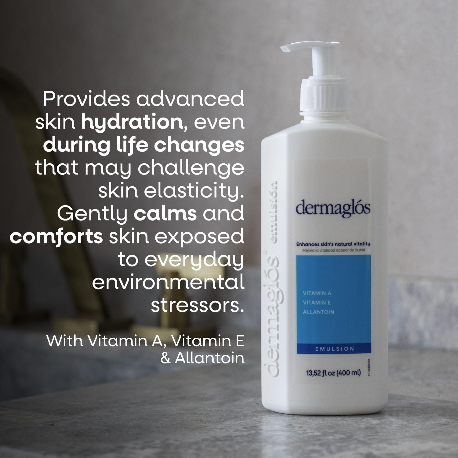 - [DERMAGLÓS EMULSION]: Our deep hydration body lotion moisturizes and leaves skin soft, elastic and healthy, The exclusive formulation maintains cellular balance, improving the level of hydration of the skin thanks to the balanced action of their components.