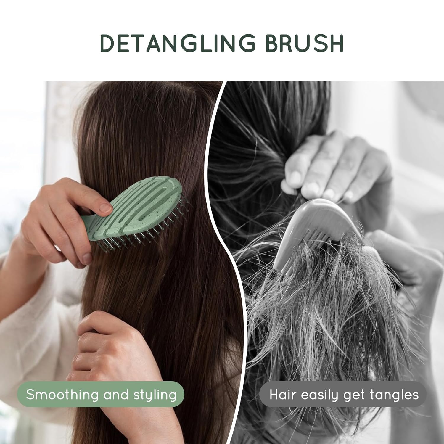 Detangler Hairbrush, Vented Detangling Brush for Straight, Wavy,Curly and Fine Hair, Dry and Wet, Quick Smoothing for Women and Men, Eco-Friendly & Sustainable Material (Green)