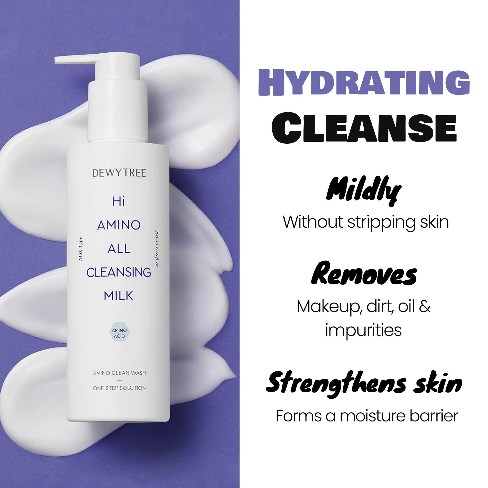 - Cleansing Milk: Dewytree Hi Amino All Cleansing Milk is formulated to cleanse your skin more mildly, more moistly, and more neatly for the delicate skin that irritates your face when you wash your face.