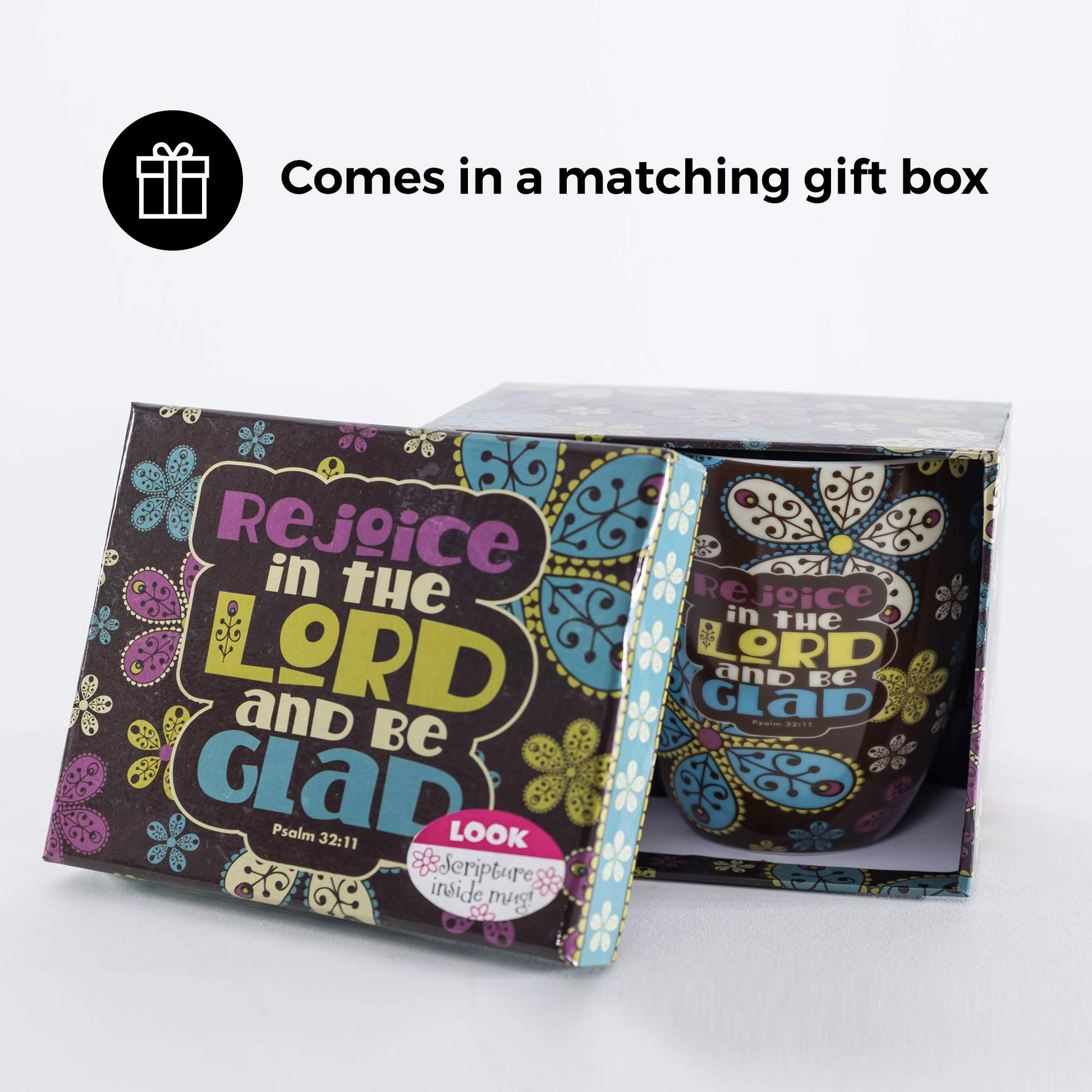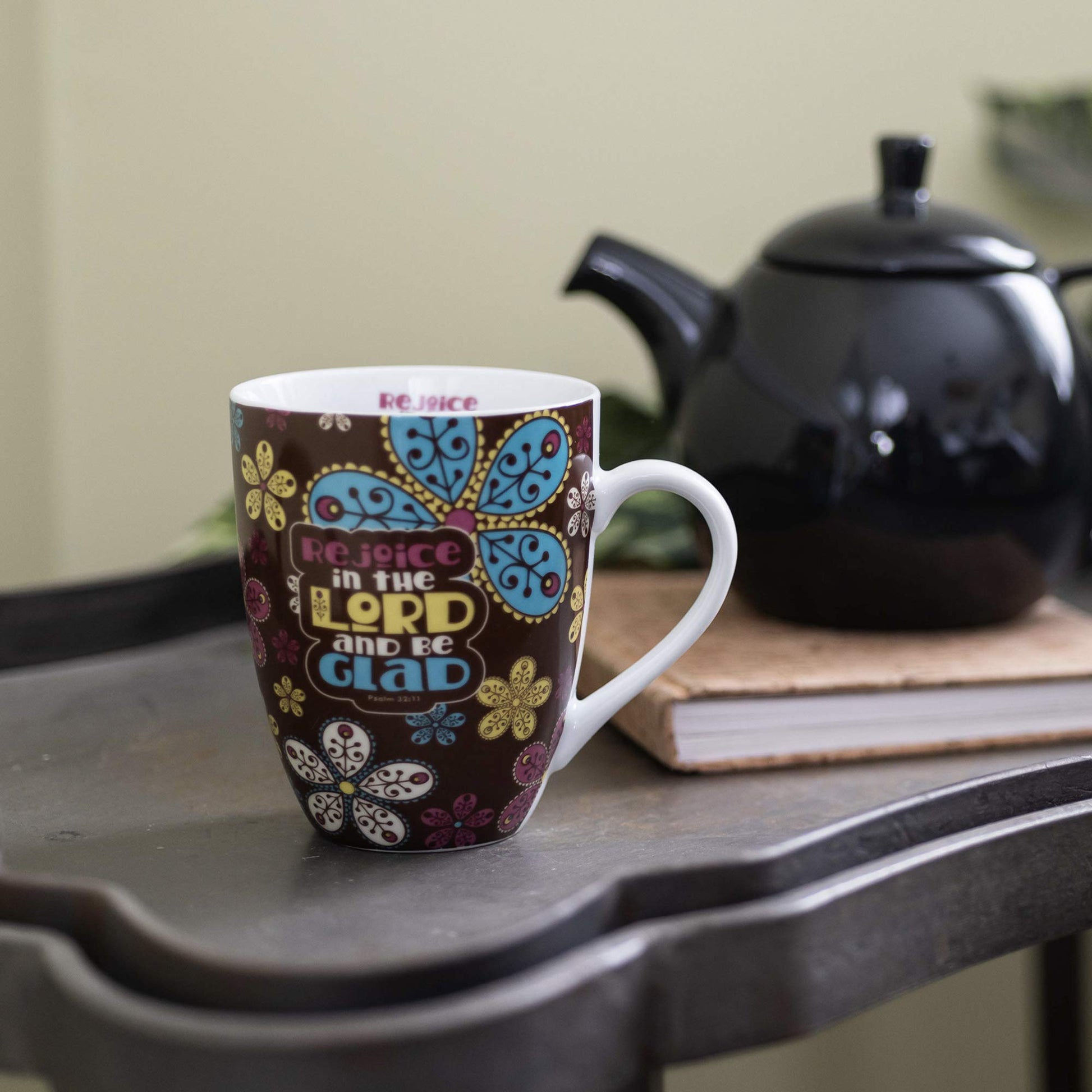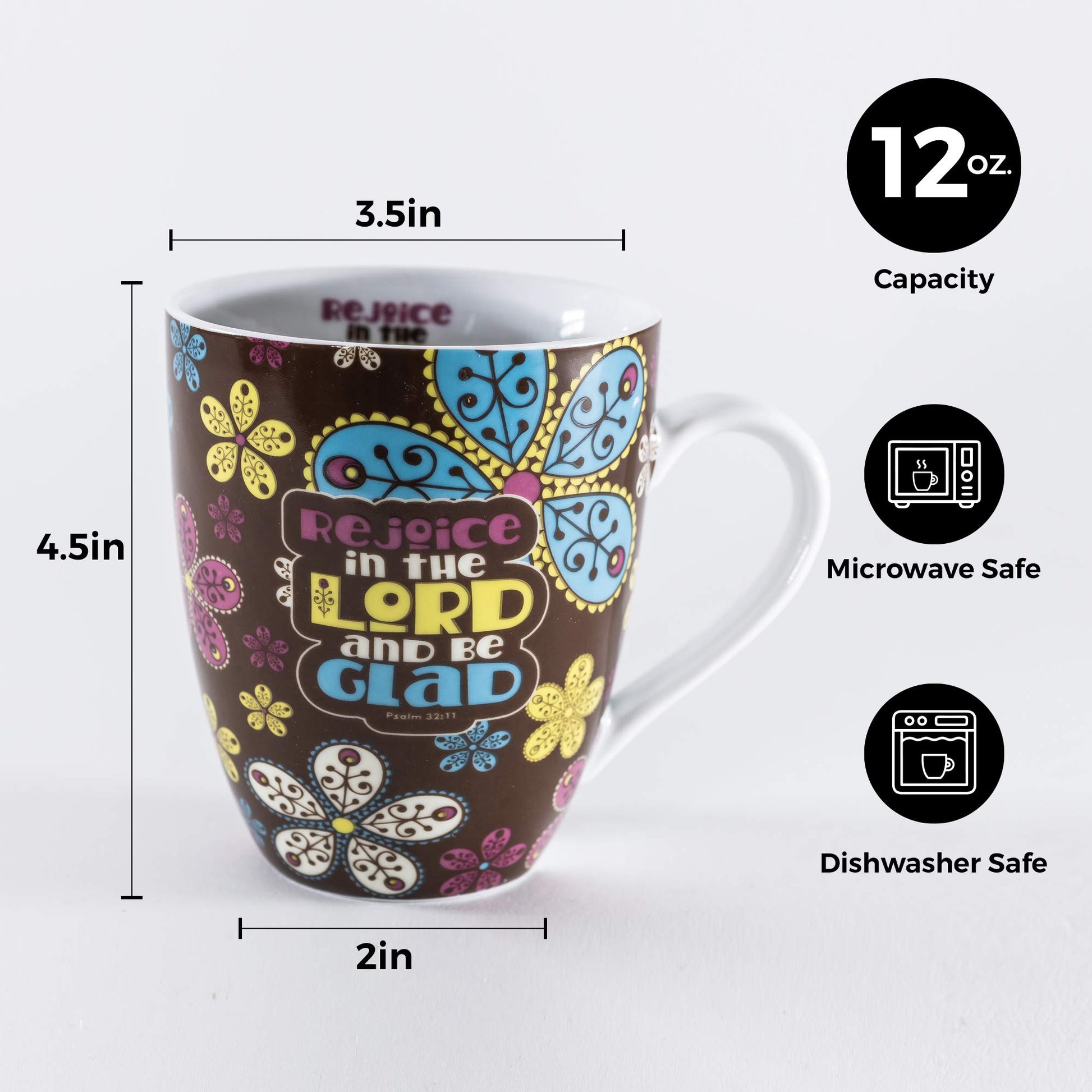 Details: Fun and colorful inspirational mug. Features scripture inside each mug. Ceramic mug holds 16 ounces and is 6" tall, come in a coordinating gift box and is dishwasher and microwave safe. Thoughtful and beautiful gift for someone special!