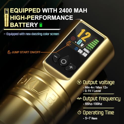 - DK-W1 Pro tattoo machine loaded a customized core-less motor,12V-13000 RPM,it's a powerfull and stable motor ,processing with very precise CNC machine tools, each component can be perfectly matched,and then combined and assembled to obtain excellent machines.DKLAB Tattoo pen gun kit have past our professional engineer team tested,which will help them arrive to you in a super nice condition to working.