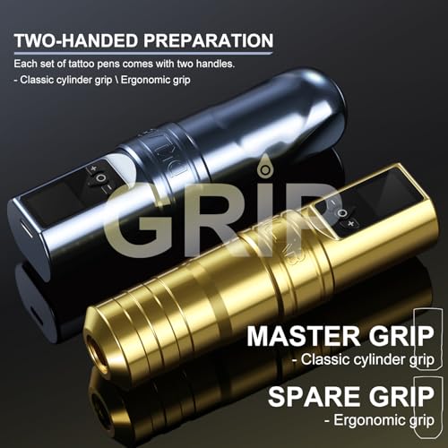 - The ergonomic exterior design and spare ergonomic shape grip provide you with a good tattoo working experience during long hours of work.The optimized 2400mAh high-capacity battery includes short circuit protection,overcharge protection, and circuit optimization (saving energy),which can help you work within 4-8 hours without replacing the battery (fully charged).Of course,another spare battery allows you to work completely without worrying about battery level.