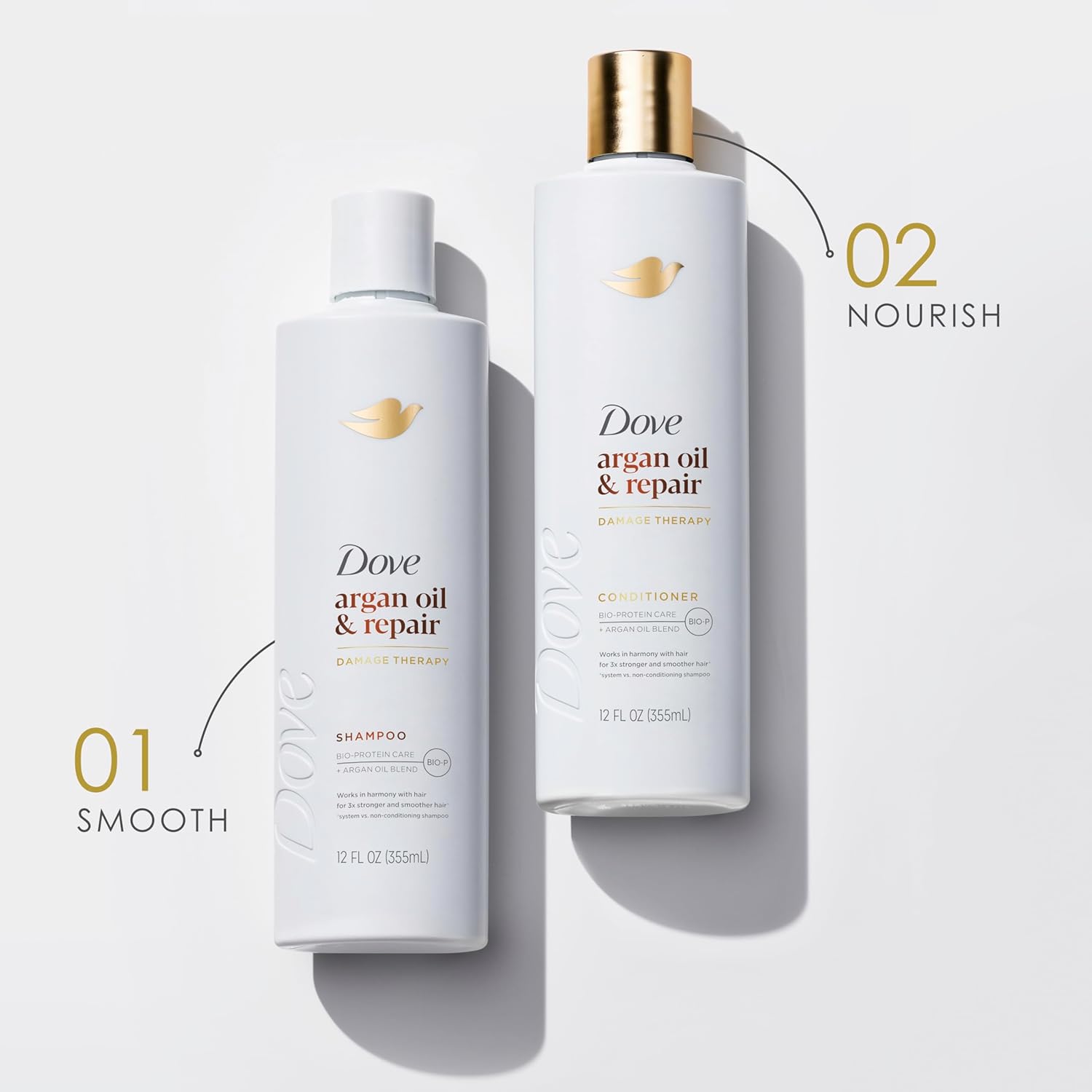 - VISIBLY REPAIR HAIR: Dove Argan Oil & Repair Shampoo and Conditioner system deeply nourishes and visibly repairs weakened hair from within.