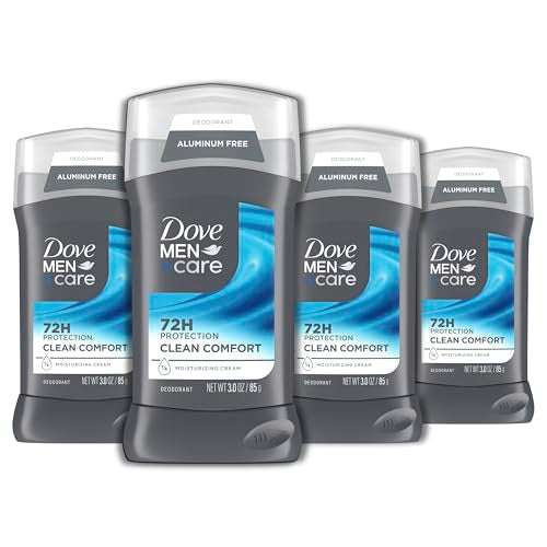 DOVE MEN + CARE Deodorant Stick for Men Clean Comfort 4 Count Aluminum Free 72-Hour Odor Protection Mens Deodorant with 1/4 Moisturizing Cream 3 oz (Pack of 4)