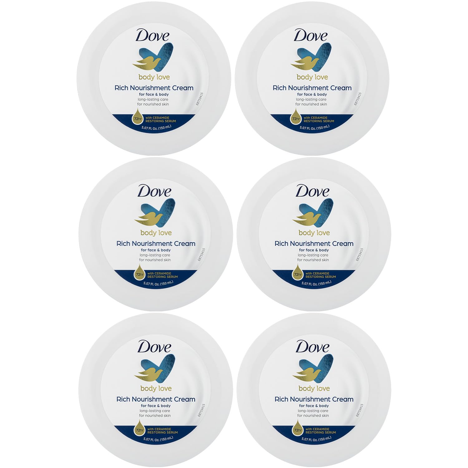 Dove Nourishing Body Care, Face, Hand, and Body Rich Nourishment Cream for Extra Dry Skin with 48-Hour Moisturization, 4-Pack, 2.53 Oz Each Jar