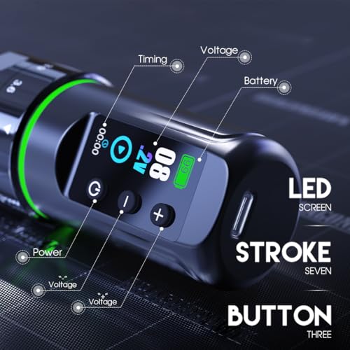 - ¡¼Precision Monitoring¡½Color LED displays real-time voltage and battery percentage, plus built-in session timer; enables precise control and enhanced efficiency during tattooing