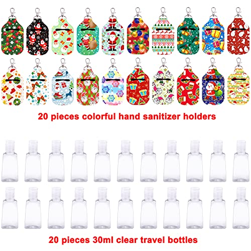 Duufin 40 Pieces Hand Sanitizer Keychain Holders Set with 20 Pieces Hand Sanitizer Holder and 20 Pieces Empty Travel Bottles