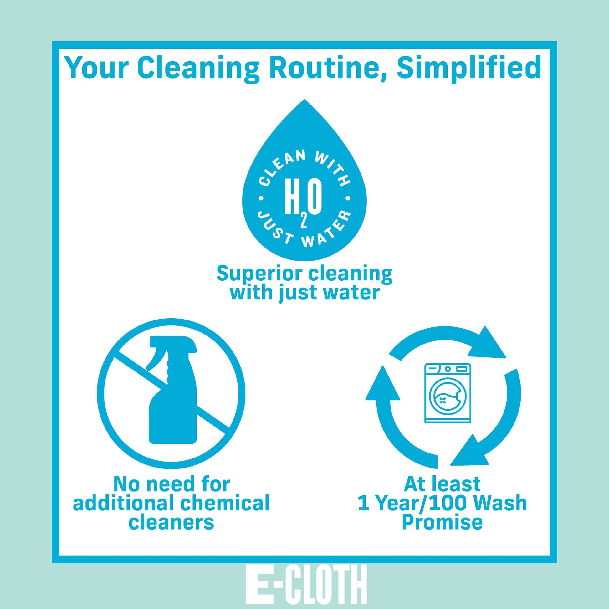 Details: Always up for some good clean fun, the E-Cloth General Purpose Cloth tackles nearly every household cleaning task on your list. Masses of precision-engineered microfibers attract and trap grease, grime, fingerprints, and over 99% of bacteria using the cleaning power of water. Use it on countertops, tile, appliances, even glass. Just dampen and wipe. With so many grab-and-go uses, this cloth will be a constant companion. And without cleaning fluids to lug and spray, you’ll speed through chores – and avoid elements that could linger in air and on surfaces and travel down drains. Rinse and dry between tasks. Toss in the laundry – not a landfill – to refresh. Reusable and backed by our 1-year or 100-wash promise, this cloth helps you cut down on waste and cost, and still clean fresh.