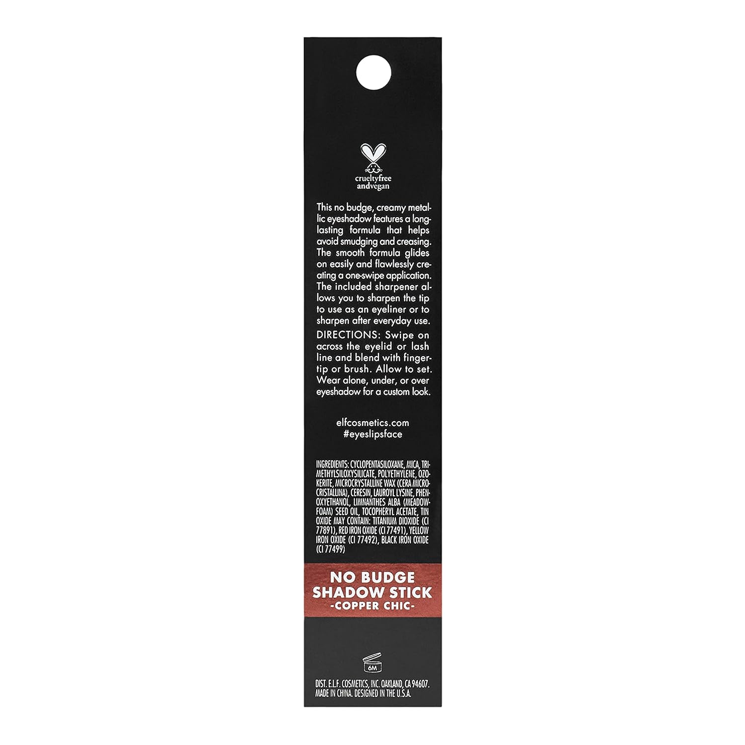 - HIGH-PIGMENT METALLIC EYESHADOW: The e.l.f. No Budge Shadow Stick is a versatile cream eyeshadow stick that delivers high-pigment, metallic colour with stay-put power.