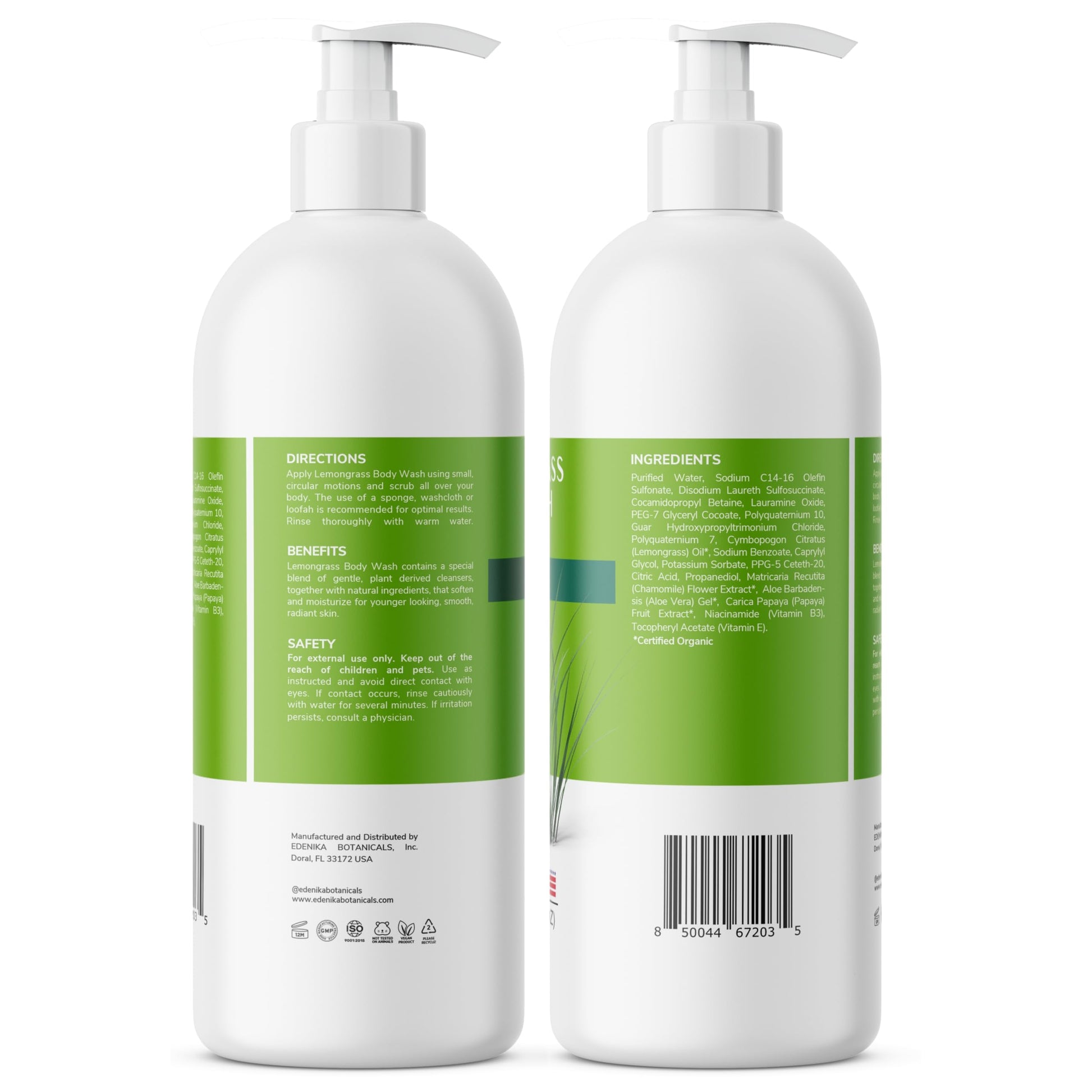 EDENIKA BOTANICALS Lemongrass Body Wash with Vitamin E, Cleanses, Refreshes & Invigorates, Shower Gel for Dry and Sensitive Skin, Women & Men, Organic & Natural, 16 fl oz, 2-Pack